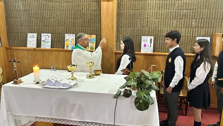 Este jueves 06 de noviembre 23 estudiantes junto a nuestro Capellán el Padre Juan Carlos Roco y parte de nuestra comunidad Educativa acompañaron a los jóvenes a encontrarse con el Señor en medio de la Eucaristía.